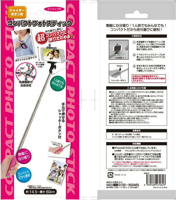 □商品詳細 業界最小14.5cmに縮み 胸ポケットにも入るセルカ棒 自撮り棒になります。